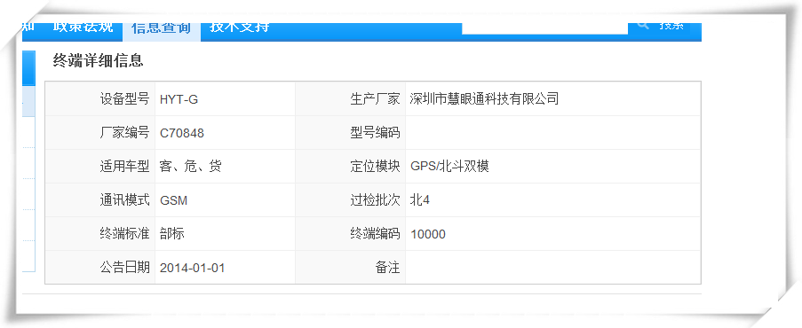 慧眼通(HYT-G)北斗部标一体机成功在广东省厅备案